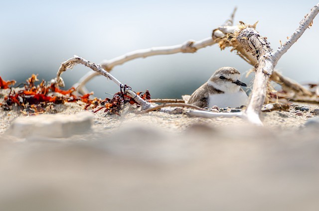 Photo : Gravelot à collier interrompu femelle en position d'incubation, Clément Déroulez.