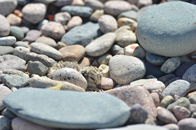 Oeuf de gravelot à collier interrompu au milieu des galets. Photo : Julien Houron